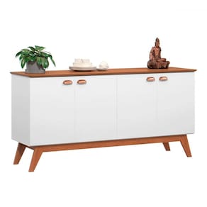 O(a) Balcão Buffet Atlanta 4 Portas Branco/Nature - Tebarrot é produzido em MDF, MDP e Pinus na escala de brilho Semi-Brilho, e possui um grau de dificuldade de montagem: Médio.