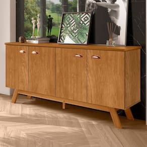 O(a) Balcão Buffet Atlanta 4 Portas Nature - Tebarrot é produzido em MDF, MDP e Pinus na escala de brilho Semi-Brilho, e possui um grau de dificuldade de montagem: Médio.