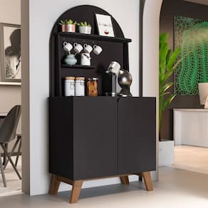 O(a) Balcão Buffet Bali 2 Portas 3 Prateleiras Preto - Artely Móveis é produzido em MDF e MDP na escala de brilho Fosca com Textura, e possui um grau de dificuldade de montagem: Médio.