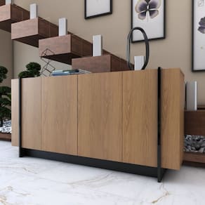 O(a) Balcão Buffet Balneário Camboriú 4 Portas 2 Prateleiras Freijó/Preto - Loja é produzido em MDP na escala de brilho Fosco, e possui um grau de dificuldade de montagem: Médio.