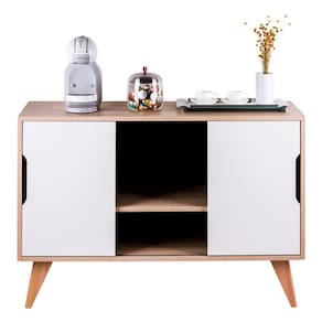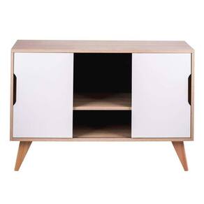 Buffet / Aparador / Balcão Modelo Murano cor Carvalho Treviso com 2 portas Brancas, o móvel perfeito para deixar seu ambiente com estilo e organizado.