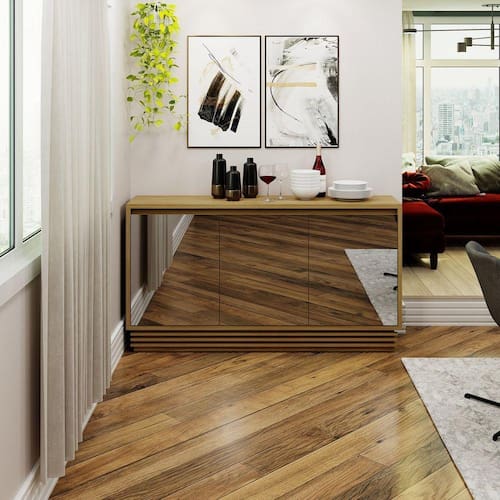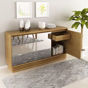 Balcão Buffet com Espelho Bb2609 Tecnomobili, possui um mix de design moderno e elegância, proporcionando ao seu ambiente muito charme. Funcional pode ser utilizado como móvel de bancada, balcão e até mesmo aparador, que máximo não é mesmo? É a peça chave para sua salas de estar e jantar. O móvel possui três portas com espelho e uma gaveta, estrutura em MDP e acabamento em pintura UV.