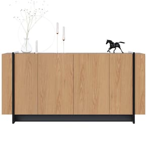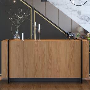 A sala de jantar é um dos principais ambientes da casa, pois é nela que recebemos os amigos e familiares para curtir aquela receita nova ou mesmo saborear a tradicional pizza do fim de semana e, portanto, devemos abusar da decoração para torná-la um espaço agradável e receptivo. Então, que tal um buffet que foge do tradicional e traz um design moderno e inspirado nas águas brasileiras?! Isso mesmo! O Buffet Copacabana Freijó/Preto Fosco, além de render homenagem à praia carioca, ainda imprime em cada detalhe a beleza desse lugar representado em um móvel. A mistura das tonalidades com as texturas da madeira e dos tubos metálicos é o que torna esse balcão buffet contemporâneo e cheio de estilo. Já a qualidade também é inquestionável, pois é fabricado em MDP com acabamento UV, possui 4 portas com amplo espaço interno e 2 prateleiras para deixar todos os aparatos de jantar organizados e sempre à altura das mãos. Então que tal ter um pedacinho da Capacabana aí na sua sala de jantar?! Adicione agora mesmo esse Balcão Buffet ao seu carrinho e surpreenda-se com os elogios!Dimensões do ProdutoLargura: 160 cm.Altura: 80 cm.Profundidade: 42,5 cm.Peso: 45 Kg.Características do ProdutoMaterial da estrutura: MDP.Material do Fundo: MDP.Peso Suportado: 50 Kg distribuídos.Acabamento: Pintura UV.Escala de Brilho: Texturizado Fosco.Possui Portas: Sim.Quantidade de Portas: 4 Portas.Tipo de Porta: Convencional.Possui Prateleiras: Sim.Quantidade de Prateleiras: 2 Prateleiras.Material da Prateleira: MDP.Possui Nicho: Não.Possui Gavetas: Não.Diferenciais:- Design moderno.- Tubos metálicos preto.- Cor imita mármore.Sistema de Montagem: Parafuso e Miniflix.Manual de Montagem: Sim.Complexidade da Montagem: Média.Conteúdo da Embalagem: 1 Buffet.Volumes: 2 Volumes.Garantia do Fabricante: 3 meses contra defeitos de fabricação.Montagem: Recomendamos que seja feita por um profissional.Recomendação de limpeza: Utilize pano levemente úmido.Observações importantes:- Produto para uso residencial em ambiente interno, não devendo ficar exposto diretamente ao sol, calor e umidades excessivas.- Pode haver alguma diferença de tonalidade entre a imagem e o produto real, por conta do tratamento de imagens e a calibração de cores do seu monitor.- As imagens são meramente ilustrativas, não acompanham objetos de decoração e eletrônicos.- Confira o estado da embalagem, não devendo assinar o comprovante em caso de danos.- Não asseguramos, no ato da entrega, por subir escadas/elevadores, pelo transporte por guincho em apartamentos ou montagem, desmontagem e instalações. Eventuais despesas são por conta do comprador.- Confira as dimensões do produto e certifique-se de que passará normalmente por supostos elevadores, portas, escadas e/ou corredores de sua residência.