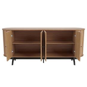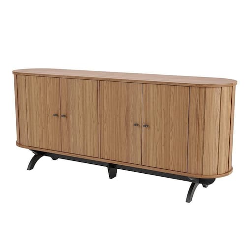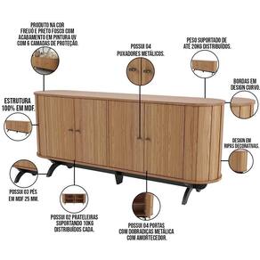 Ter um ambiente agradável é importante para que possamos dispor de momentos especiais, seja com família ou amigos, a sensação de conforto é indispensável. Com esse intuito o Balcão Buffet Para Sala De Estar Curvo 04 Portas Romagna 180cm D03 Freijó Preto Fosco - Lyam Decor se faz perfeito para suprir nossas necessidades e trazer destaque à decoração, suas amplas prateleiras internas auxiliam na organização das louças, cristais e taças, deixando tudo a mão e facilitando a acomodação dos itens. As portas com design em ripas decorativas e o tampo com bordas curvilíneas combinam com os delicados puxadores metálicos e contrastam maravilhosamente com os pés preto fosco.