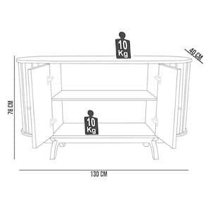 Suporta até 10kg distribuídos sobre o tampo e até 10kg em cada prateleira.