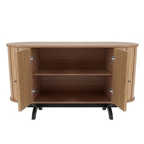 Ter um ambiente agradável é importante para que possamos dispor de momentos especiais, seja com família ou amigos, a sensação de conforto é indispensável. Com esse intuito o Balcão Buffet Para Sala De Estar Curvo 02 Portas Romagna 130cm D03 Freijó Preto Fosco - Lyam Decor se faz perfeito para suprir nossas necessidades e trazer destaque à decoração, suas amplas prateleiras internas auxiliam na organização das louças, cristais e taças, deixando tudo a mão e facilitando a acomodação dos itens. As portas com design em ripas decorativas e o tampo com bordas curvilíneas combinam com os delicados puxadores metálicos e contrastam maravilhosamente com os pés preto fosco.