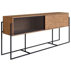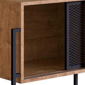 Aparador Buffet, Linha York Artesano. A linha York é moderna e tem uma pegada industrial, torna-se a opção ideal para quem gosta de personalidade e praticidade na hora de decorar. Possui estrutura em MDP de 15mm, com acabamento em pintura BP (Fosco). Composta por 2 portas de correr com sistema de roldanas, sendo 1 porta com estrutura metálica 15x15mm e chapa expandida em aço, acabamento em pintura epóxi preto fosca, e 1 porta em MDP e 15mm, possui pés com estrutura metálica em aço 15x15mm e acabamento em pintura epóxi preto fosca, os pés possuem parafs para regulagem com capa plástica para evitar atrito do móvel com o piso. É uma peça multifuncional, pode dar apoio a mesa de jantar no momento de servir as refeições e é também para organização do ambiente. Mais produtos da Linha York Artesano, você encontra em nosso site, podendo fazer a composição completa para sua casa, são diversos itens com design prático e funcional para tornar a vida mais facil e a casa mais alegre. Este móvel chegará em sua casa separado em 01 volume.