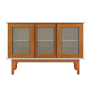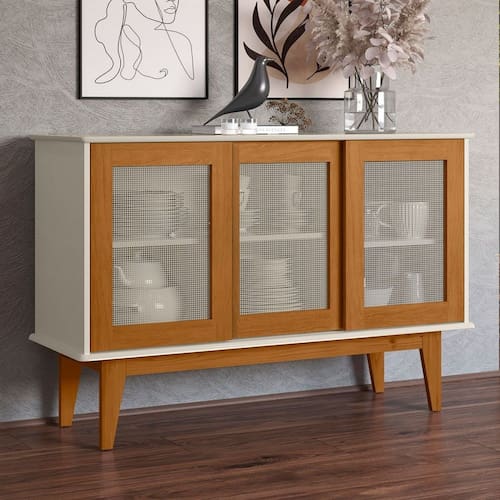 O(a) Balcão Buffet Detroit 3 Portas 3 Prateleiras Off White/Nature - Tebarrot é produzido em MDF, MDP e Pinus na escala de brilho Semi-Brilho, e possui um grau de dificuldade de montagem: Médio.