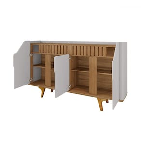 O(a) Balcão Buffet Emerald 4 Portas Ripado Off White/Cinamomo - Pnr Móveis é produzido em MDF na escala de brilho Brilhante e Fosco, e possui um grau de dificuldade de montagem: Médio.