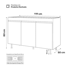 **COMPATÍVEL COM PIA/CUBA DE 120CM**