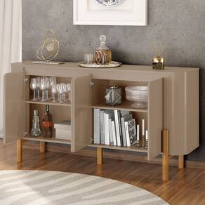 O(a) Balcão Buffet Imbassaí 4 Portas 2 Prateleiras Marrom Claro - Móveis Bechara é produzido em MDP na escala de brilho Brilhante e Fosco, e possui um grau de dificuldade de montagem: Médio.