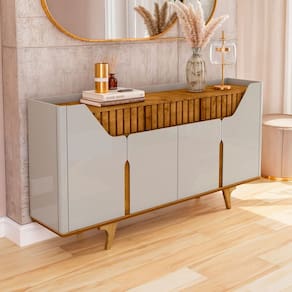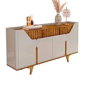 O(a) Balcão Buffet Madison 4 Portas 2 Gavetas Ripado Off White/Naturallle - Pnr Móveis é produzido em MDF na escala de brilho Brilhante e Fosco, e possui um grau de dificuldade de montagem: Médio.
