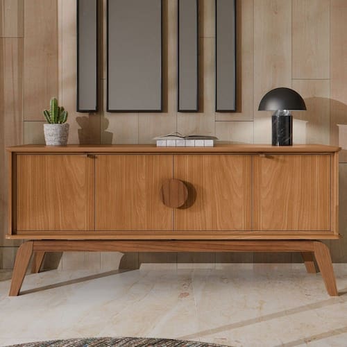 O(a) Balcão Buffer Parais 4 Portas Natural - Tebarrot é produzido em MDF e MDP na escala de brilho Semi-Brilho, e possui um grau de dificuldade de montagem: Médio.