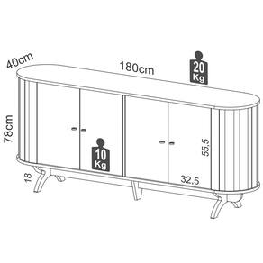 Um toque dinâmico e inovador para sala de jantar. Conheça agora mesmo os detalhes do móvel que pode transformar esse ambiente!Com a qualidade, durabilidade e resistência que só os móveis 100% MDF podem oferecer, a Mpozenato apresenta o Balcão Buffet Miles!! Ele é uma ótima alternativa para conferir requinte e funcionalidade ao cômodo onde esses requisitos são essenciais. Conta com 4 portas de puxadores metálicos e amplo espaço interno com 2 prateleiras para guardar louças, toalha de mesa e itens diversos. Ah, o design com as extremidades arredondadas, detalhes ripados e os pés curvos fazem dele um balcão buffet retrô! Inclusive, as portas também possuem dobradiças com amortecedor, facilitando o uso diário!Depois de conhecer um pouco mais sobre esse móvel, fica difícil recusar né? Aproveite e leve já o seu buffet!!EspecificaçõesDimensões do ProdutoLargura: 180 cm.Altura: 78 cm.Profundidade: 40 cm.Peso: 52 Kg.Características do ProdutoMaterial da Estrutura: MDF.Acabamento: Pintura UV.Escala de Brilho: Fosco.Peso Suportado: 10Kg na base/20 Kg no tampo.Possui Portas: Sim.Material da Porta: MDF 18mm.Quantidade de Portas: 4 Portas.Tipo de Porta: Convencional.Tipo de dobradiças: Metálicas.Possui Prateleiras: Sim.Material da Prateleira: MDF 15mm.Quantidade de Prateleiras: 2 Prateleiras.Possui Gavetas: Não.Possui Nichos: Não.Possui Puxador: Sim, metálico.Possui Pés: Sim.Tipo de Pés: MDF.Diferenciais:- Design moderno.- Amplo espaço interno.- Pés em MDF.Sistema de Montagem: Minifix / Cavilhas / Parafusos.Manual de Montagem: Sim.Complexidade da Montagem: Média.Volumes: 2 Volumes.Conteúdo da Embalagem: 1 Buffet.Garantia do Fabricante: 90 dias contra defeitos de fabricação.Montagem: Recomendamos que seja feita por um profissional.Recomendação de Limpeza: Utilize pano levemente úmido.Observações importantes:- Produto para uso residencial em ambiente interno, não devendo ficar exposto diretamente ao sol, calor e umidades excessivas.- Pode haver alguma diferença de tonalidade entre a imagem e o produto real, por conta do tratamento de imagens e a calibração de cores do seu monitor.- As imagens são meramente ilustrativas, não acompanham objetos de decoração e eletrônicos.- Confira o estado da embalagem, não devendo assinar o comprovante em caso de danos.- Não asseguramos, no ato da entrega, por subir escadas/elevadores, pelo transporte por guincho em apartamentos ou montagem, desmontagem e instalações. Eventuais despesas são por conta do comprador.- Confira as dimensões do produto e certifique-se de que passará normalmente por supostos elevadores, portas, escadas e/ou corredores de sua residência.