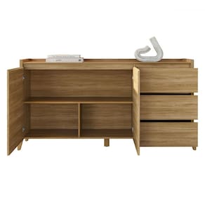 O(a) Balcão Buffet Rennes 3 Gavetas 2 Portas Hannover - Casa D é produzido em MDF e MDP na escala de brilho Semi-Fosco, e possui um grau de dificuldade de montagem: Médio.