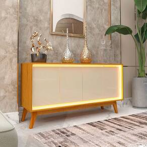 O(a) Balcão Buffet Requinte 4 Portas 100% Mdf com Led Naturalle/Off White - Gelius é produzido em 100% MDF na escala de brilho Semi-Fosco, e possui um grau de dificuldade de montagem: Médio.