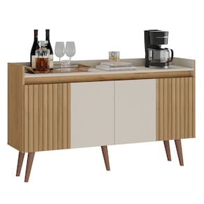 O(a) Balcão Buffet Retro 4 Portas 1 Prateleira Ripado 3d Canelato/Natural/Off White - Atualle Móveis é produzido em MDF na escala de brilho Brilho, e possui um grau de dificuldade de montagem: Médio.