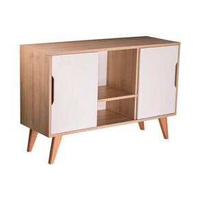 Buffet / Aparador / Balcão Retrô Modelo Murano cor Carvalho Treviso com 2 portas Brancas, o móvel perfeito para deixar seu ambiente com estilo e organizado.