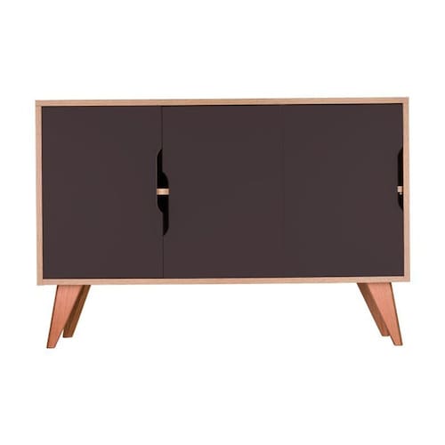 Balcão Buffet Retrô com 3 Portas Carvalho e Grafite