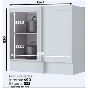 Composto por 1 porta, com dobradiças metálicas prateleira interna, puxadores em metal, este balcão é um modulo avulso da composição Cozinha Modulada Americana e é ideal para compor sua cozinha como desejar. Um novo conceito inspirado nas clássicas cozinhas estilo americano, seu design contemporâneo e diferenciado embeleza qualquer ambiente. O módulo canto reto fica 100 mm afastado da parede e deve-se contar largura total de 940 mm para projetos. Opção de instalação sem rodapés, suspensa (ferragens para fixação na parede inclusas).