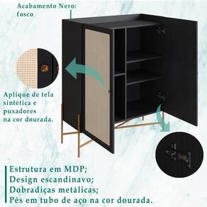Balcão Café Bar 2 Portas 93 Cm Pés Metal 28929 Oslo. Traz como característica um traço artesanal, suave e acolhedor. Possui estrutura em MDP de 15mm, acabamento em pintura BP na cor Hanover (Fosco), e Pés de tubo metálico em aço com pintura epóxi na cor dourada. Composto por duas portas com dobradiças metálicas em aço com proteção anticorrosão, puxadores de poliestireno na cor Dourado, aplique de tela sintética (PVC com poliéster), fixada na parte externa das portas, prateleiras e divisão interna, as extremidades dos pés possuem ponteiras plásticas para evitar atrito do móvel com o piso, conta ainda com longarina metálica embaixo do móvel para evitar empenamento. Com design escandinavo minimalista, é a opção ideal para um ambiente com toque sofisticado e ao mesmo tempo aconchegante. Mais produtos da Linha Oslo, você encontra em nosso site, podendo fazer a composição completa para sua casa, são diversos itens com design prático e funcional para tornar a vida mais facil e a casa mais alegre. Este móvel chegará em sua casa separado em 02 volumes.