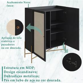 MDPBalcão Café Bar 2 Portas 93 Cm Pés Metal 28929 Oslo. Traz como característica um traço artesanal, suave e acolhedor. Possui estrutura em MDP de 15mm, acabamento em pintura BP na cor Hanover (Fosco), e Pés de tubo metálico em aço com pintura epóxi na cor dourada. Composto por duas portas com dobradiças metálicas em aço com proteção anticorrosão, puxadores de poliestireno na cor Dourado, aplique de tela sintética (PVC com poliéster), fixada na parte externa das portas, prateleiras e divisão interna, as extremidades dos pés possuem ponteiras plásticas para evitar atrito do móvel com o piso, conta ainda com longarina metálica embaixo do móvel para evitar empenamento. Com design escandinavo minimalista, é a opção ideal para um ambiente com toque sofisticado e ao mesmo tempo aconchegante. Mais produtos da Linha Oslo, você encontra em nosso site, podendo fazer a composição completa para sua casa, são diversos itens com design prático e funcional para tornar a vida mais facil e a casa mais alegre. Este móvel chegará em sua casa separado em 02 volumes.