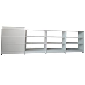 Detalhe Técnico: Este balcão é composto por 4 módulos: 1 balcão caixa 3 Balcão expositor Cada módulo tem a medida de 100x87x38mts, com a largura total 3,48mts. Fabricado 100% em MDF, com prateleiras internas e vidro frontal em três módulos. Acabamento de qualidade e excelente aproveitamento de espaço.