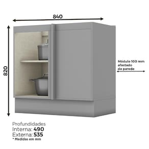 Balcão Canto Reto 1 Porta Americana com Tampo - Móveis Henn - Cinza