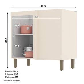 Balcão Canto Reto 1 Porta com Tampo Connect - Móveis Henn - Off White