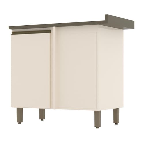 Balcão Canto Reto 1 Porta Connect com Tampo - Móveis Henn O Balcão Canto Reto Connect é perfeito para complementar sua cozinha. Conta com 1 porta para guardar e organizar seus utensílios. Seus puxadores são na cor bronze dando um toque de charme e elegância ao ambiente. O Balcão Canto Reto faz parte da linha de cozinha moduladas Connect da Henn, que oferece mais de 30 módulos para você criar o ambiente dos seus sonhos.