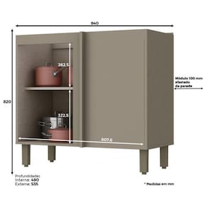 ESPECIFICAÇÕES: Estrutura 100% MDF Pintura UV 1 Porta Dobradiças de 35mm Puxadores modelo perfil em alumínio na cor bronze Montagem pode ser realizada do lado esquerdo ou direito *O módulo canto reto fica 10cm afastado da parede e deve-se contar largura total de 94cm para projetos *Não acompanha Tampo Balcão