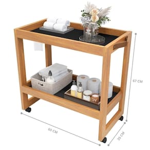 Possui 2 prateleira e 4 rodízios facilitando o manuseio do produto.