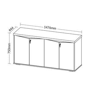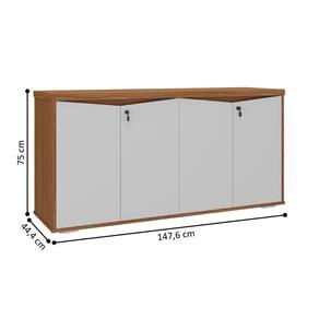 Ela possui um design marcante, com Tampo em Tamburato de 37mm. Possui quatro portas com duas prateleiras, chave para travamento das portas.