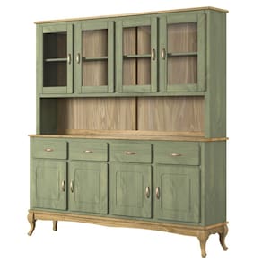 - Acabamento: Cera na cor verde oliva com veios e nós aparentes.