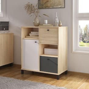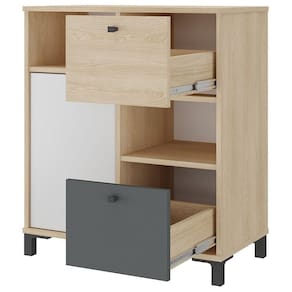 O Balcão Nordik oferece a combinação perfeita de forma e função. A porta com prateleira interna regulável em três alturas e as duas gavetas com corrediças metálicas proporcionam espaço de sobra para você guardar seus pertences com organização e estilo. Seja no home office, no quarto, na sala ou no escritório, este móvel versátil se adapta a qualquer ambiente, trazendo a leveza e a funcionalidade do design escandinavo para o seu dia a dia.