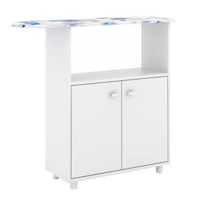 Balcão com tábua de passar é sinônimo de funcionalidade, pois conta com detalhes que ajudam muito no dia a dia. Ele possui 2 portas de dobradiças metálicas com puxadores de plástico, prateleira interna e nicho superior, ou seja, tem tudo que precisa para fazer diferença no cômodo! Ah, e ainda é fabricado em MDP com acabamento em pintura UV que agrega qualidade ao produto.