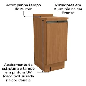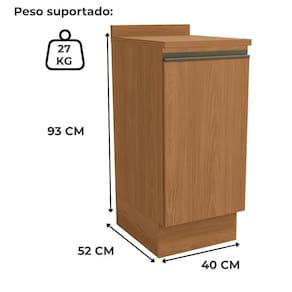 Produto com design inteligente pensado para quem não abre mão de beleza, resistência e pde. Balcão de 40cm de largura produzido em MDP com espessura de 15mm, acabamento em pintura texturizada UV (fosco ou semibrilho). Conta com 1 porta equa com dobradiça reta de 35mm e amortecedor, puxador em alumínio, tampo em MDP de 25 mm com sarrafo de reforço e acabamento texturizada UV (fosco ou semibrilho). Sistema de montagem , podendo ser instalado suspenso ou com rodapé adaptando-se ao seu projeto e à sua necessidade. Este móvel chegará na sua casa separado em 02 volumes.