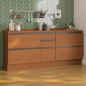 Conjunto de balcões que une estilo moderno, resistência e versatilidade para sua cozinha. Composto por Balcão com Tampo 120 cm G746 (com 1 porta basculante com pistão a gás e 4 gavetas, sendo 2 gavetões) e Balcão com Tampo 80 cm G755 (com 2 gavetões equipados com corrediças telescópicas). Ambos os balcões contam com tampo 100% em MDP de 25 mm com sarrafo de reforço, puxadores em alumínio e sistema de montagem , permitindo instalação suspensa ou com rodapé. Fabricados 100% em MDP de 15 mm, com acabamento em pintura UV texturizada (semibrilho). Solução prática e funcional para transformar sua cozinha. Este conjunto será entregue em 04 volumes.