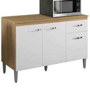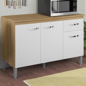 MDPBalcão Com Tampo Gabriela, funcional e compacto para o dia a dia. Estrutura em MDP (12/15 mm - fundo 3 mm) com acabamento em pintura UV. Possui porta e gaveta com dobradiças e corrediças metálicas, prateleira interna e puxadores e pés plásticos (pés com regulagem). Entregue em 2 volumes.