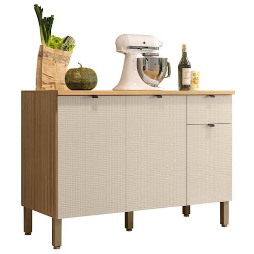 Balcão com tampo, design moderno que se adapta ao seu espaço! Produzido em MDF (12mm) com acabamento em pintura UV. Conta com 03 portas, 01 gaveta, corrediças telescópicas, dobradiças metálicas e prateleira interna. Os puxadores ergonômicos são em alumínio e pés reguláveis em plástico resistente. Este produto será entregue em 02 volumes.