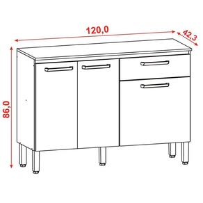 Balcão com tampo Versalhes, a beleza e a funcionalidade que você precisa. Produzido em MDP de 12 e 15mm com três portas, uma gaveta, prateleira interna e tampo. Tampo que traz a praticidade de utilização de decorações, utensílios para cozinha e até mesmo eletrodomésticos. Dobradiças e corrediças 100% metálicas, puxadores ergonômicos e pés reguláveis em plástico resistente. Acabamento em pintura com secagem em luzes UV. Este móvel chegará em sua casa separado em 01 volume.