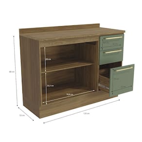 Características: Marca: Kappesberg Modelo: Botanic Referência: CB774 Estrutura: MDP Quantidade de Portas: 2 Quantidade de Gavetas: 3 Tipo de Corrediça: Telescópica Quantidade de Prateleiras: 1 Material do Puxador: Alumínio
