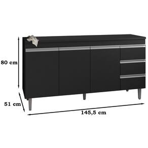 Balcao Com Tampo 150 cm 3 Portas Andreia Preto REAJL