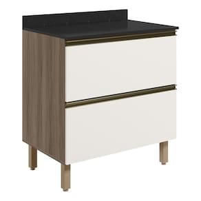 MDFBalcão Com Tampo 2 Gavetões, funcional e compacto para composições modernas. Com 80cm de largura, fabricado 100% em MDF, possui estrutura e tampo de 15mm, com forro de 3mm. Conta com 2 gavetões com puxadores em perfil alumínio além disso possuem corrediças telescópicas. Os 4 pés possuem altura de 15,5cm com regulagem adicional de 1,5cm, garantindo estabilidade em qualquer piso. Este móvel chegará em sua casa separado em 3 volumes.