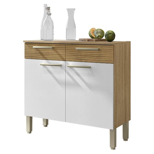 Balcao Com Tampo 2P 2G 91 cm Nala Freijo Supremo Cp Ripado Freijo KTP - Branco