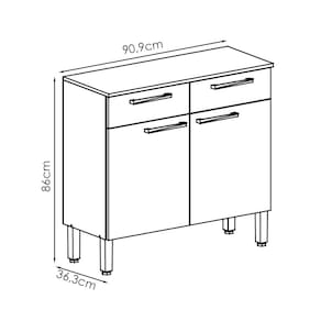 Balcão Com Tampo para quem busca praticidade na organização da cozinha. Produzido em MDP (12/15mm) com acabamento em pintura UV. Conta com 02 portas, 02 gavetas, dobradiças e corrediças metálicas. Os puxadores ergonômicos e pés reguláveis são em plástico resistente. Este produto será entregue em 01 volume.