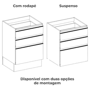 Projetado para oferecer estilo e praticidade. O Balcão com Tampo 60 cm G743 é produzido 100% em MDP de 15 mm, com acabamento em pintura texturizada UV (fosco ou semibrilho) e tampo fabricado 100% em MDP de 25 mm com acabamento em pintura BP. Conta com 3 gavetas (sendo 1 com divisor de talheres e 1 gavetão) equipadas com corrediças telescópicas de 35 mm, puxador em alumínio e duplo sistema de montagem, podendo ser instalado suspenso ou com rodapé. Este móvel chegará na sua casa separado em 03 volumes.