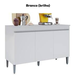 Balcão Com Tampo Manu, funcional e compacto para o dia a dia. Estrutura em MDP (12/15 mm - fundo 3 mm) com pintura UV. Possui portas com dobradiças metálicas, 2 prateleiras internas, puxadores em alumínio e pés plásticos com regulagem. Entregue em 2 volumes.