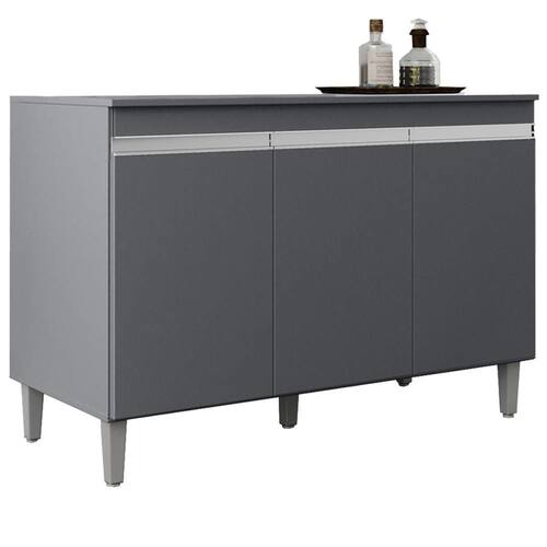 MDPBalcão Com Tampo Manu, funcional e compacto para o dia a dia. Estrutura em MDP (12/15 mm - fundo 3 mm) com pintura UV. Possui portas com dobradiças metálicas, 2 prateleiras internas, puxadores em alumínio e pés plásticos com regulagem. Entregue em 2 volumes.