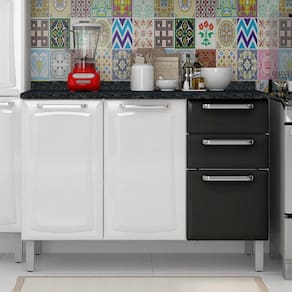 O balcão Tarsila vai transformar sua experiência na cozinha. Cada detalhe foi pensado para deixar sua rotina mais leve e sua cozinha mais funcional. Possui excelente espaço interno com prateleira, o que permite organização de alimentos e utensílios. Com dobradiças slow motion. Suporta Granito: Não Acabamento da Prateleira: Pintura Escala de Brilho da Prateleira: Semi-Brilho Acabamento da Gaveta: Pintura Escala de Brilho da Gaveta: Semi-Brilho Material do Puxador da Gaveta: Alumínio Acabamento da Porta: Pintura Escala de Brilho da Porta: Semi-Brilho Material do Puxador da Porta: Alumínio Acabamento: Pintura Acabamento dos Pés: Liso Acompanha Tampo: Sim Altura dos Pés: 16 cm Ambiente Principal: Cozinha Balcão Acompanha Pia: Não Complexidade da Montagem: Média: pode ser montado por mais de uma pessoa e/ou necessite de maior conhecimento para montagem Cor: Branco/Preto Cor do Pés: Cinza Cor do Produto: Branco/Preto Cor Interna: Branco Escala de Brilho: Semi-Brilho Gaveta com Chave: Não Itens Inclusos: 1 balcão com tampo, kit ferragens e manual de montagem Linha ou Coleção: Tarsila Manual de Montagem e Instalação: https://cdn2.madeiramadeira.com.br/atributo/itatiaia-aco/728670-1000007078-manual-assat-ig3g2-120-ig3g2-120-pia-tarsila.pdf Material da Gaveta: Aço Material da Porta: Aço Material da Prateleira: Aço Material do Tampo: MDP Material dos Pés: Plástico Medida do Tampo (L x C x E): 120x52x2,5cm Necessita Montagem: Sim Origem do Produto: Nacional Pés Reguláveis: Sim Peso: 32 kg Peso Máximo por Gaveta: 3 kg Peso Máximo por Prateleira: 15 kg Possui Pés: 05 Possui Portas: 03 Possui recorte para Cooktop: Não Recomendações de Uso, Manutenção e Limpeza: Pano umedecido Sapatas Niveladoras: Sim Sistema de Montagem: Parafusos Suporta Até (kg): 60 kg Tipo de Corrediça da Gaveta: Metálica Telescópica Tipo de Dobradiça/Corrediça da Porta: Metálica Tipo de Porta: Bater Tipo de Puxador da Gaveta: Externo Tipo de Puxador da Porta: Externo